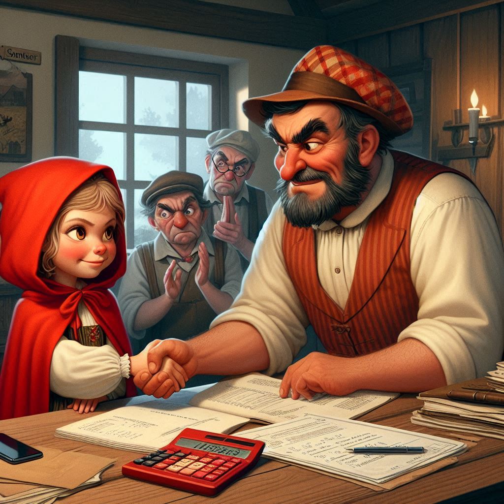 Po tom, co Kalkulku spravila o té strašné události a sankčním výměru se Kalkulka zamyslela. No jasně, hluboce. Pak sáhla do truhly po bábě, vytáhla všechny daňové výnosy od doby Zlaté buly sicilské a šla s Lízou na statek. Velkostatkáři jen ucedila ať nepřekáží, nebo ho těch 25 naholou skutečně nemine, vzala si Lízino daňové přiznání a začala kalkulovat, počítat, skládat, kombinovat, převracet, no zkrátka optimalizovat. K tomu si poručila lahev červeného, misku jahod a jeden máz Bloody Mary (proto se jí říkalo Červená). Před půlnocí dopila, utřela cípem sukně ret, sfoukla svíčku a usnula.